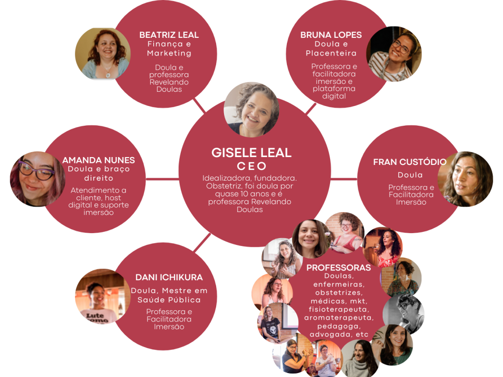 Revelando Doulas é coordenada por Gisele Leal, obstetriz formada pela USP, pós-graduada em acupuntura, que atuou como doula por quase 10 anos.