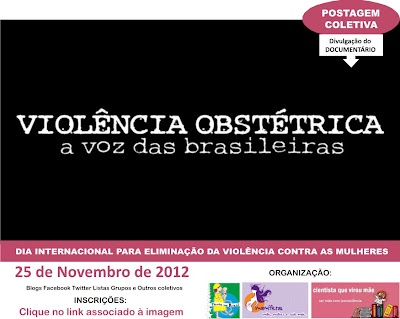 O dia 25 de Novembro é o Dia Internacional pela Eliminação da Violência contra as Mulheres. Todo tipo de violência. E como não poderia deixar de ser, vamos usar esse dia para participar da Blogagem Coletiva para Denunciar a Violência Obstétrica!